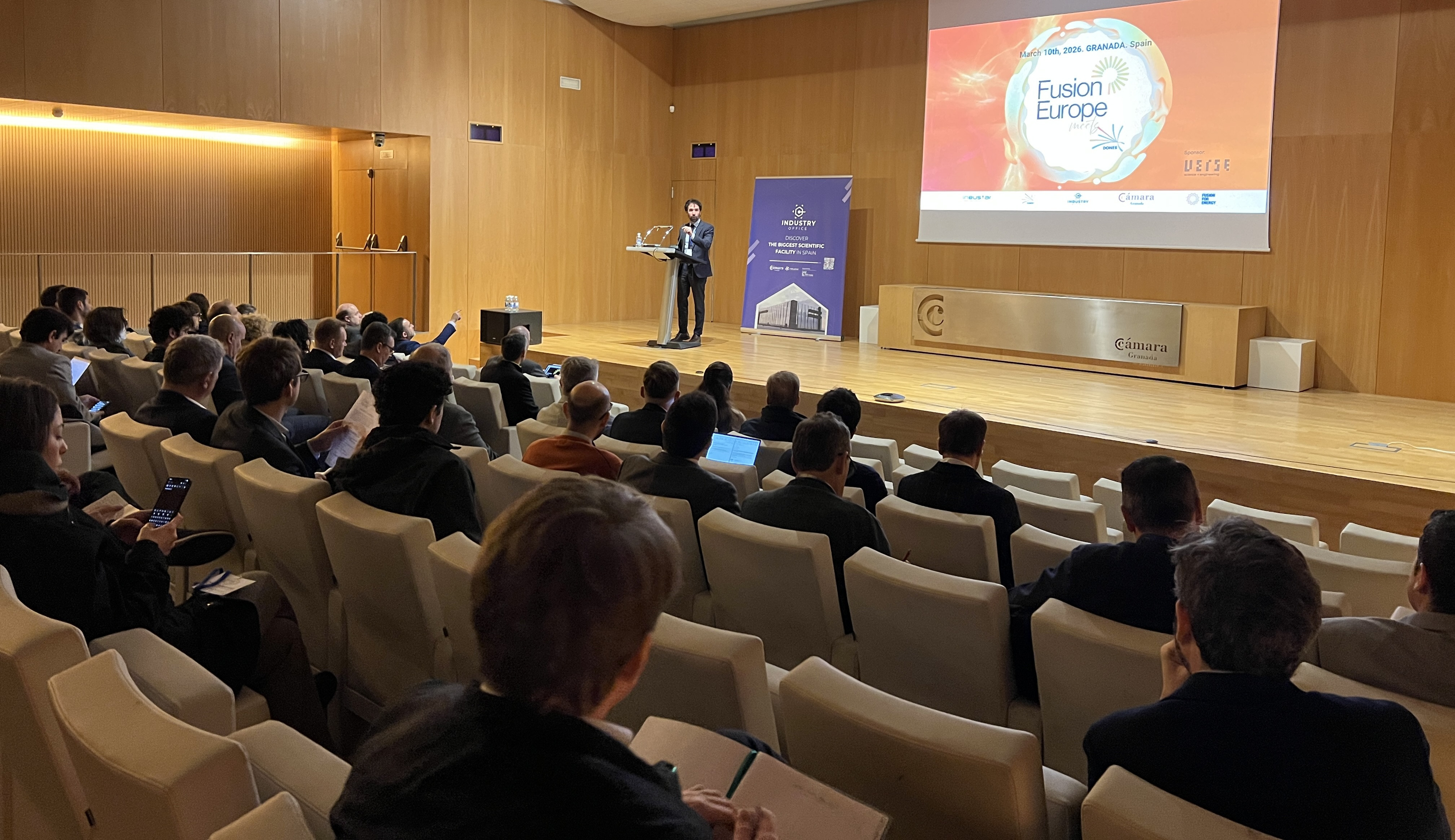 Representantes de 70 empresas de todo el mundo participaron el 10 de marzo en el encuentro «Fusion Europe & DONES», organizado en la Cámara de Comercio de Granada por Fusion Europe en colaboración con Fusion Energy, Ineustar, Industry Office e IFMIF-DONES.