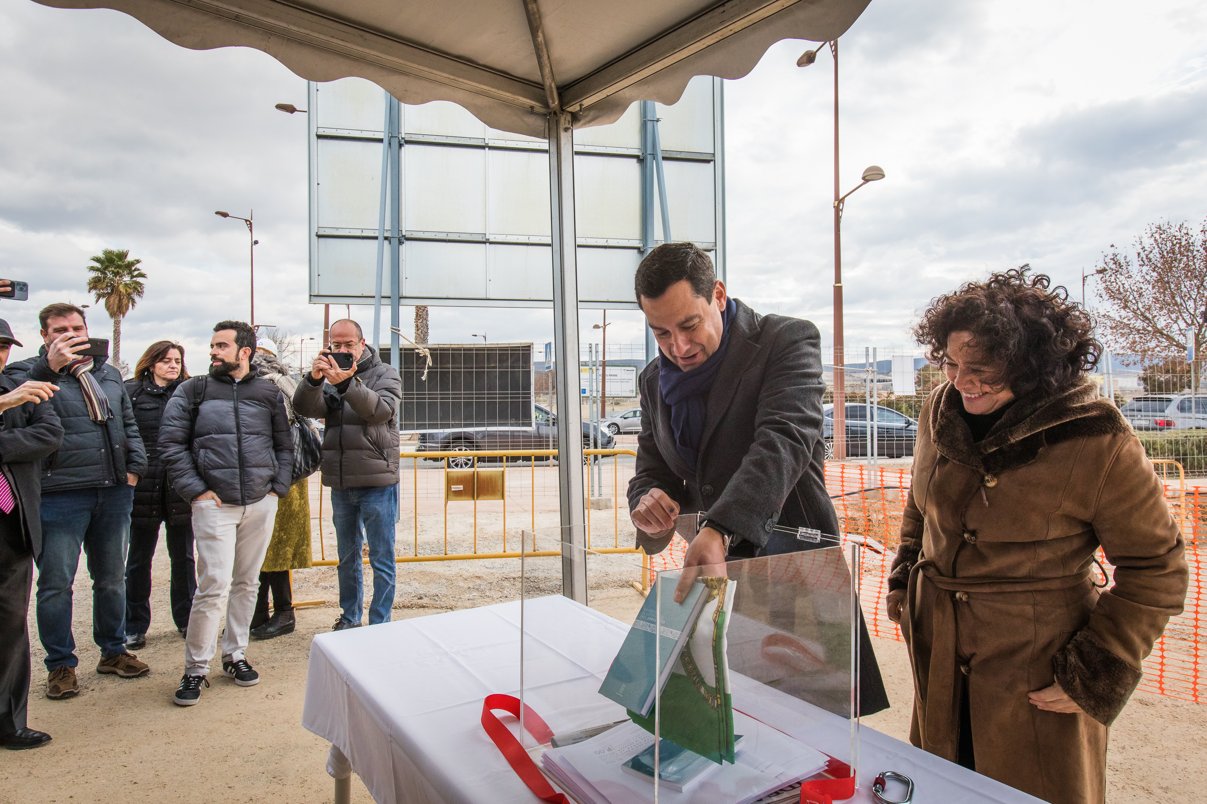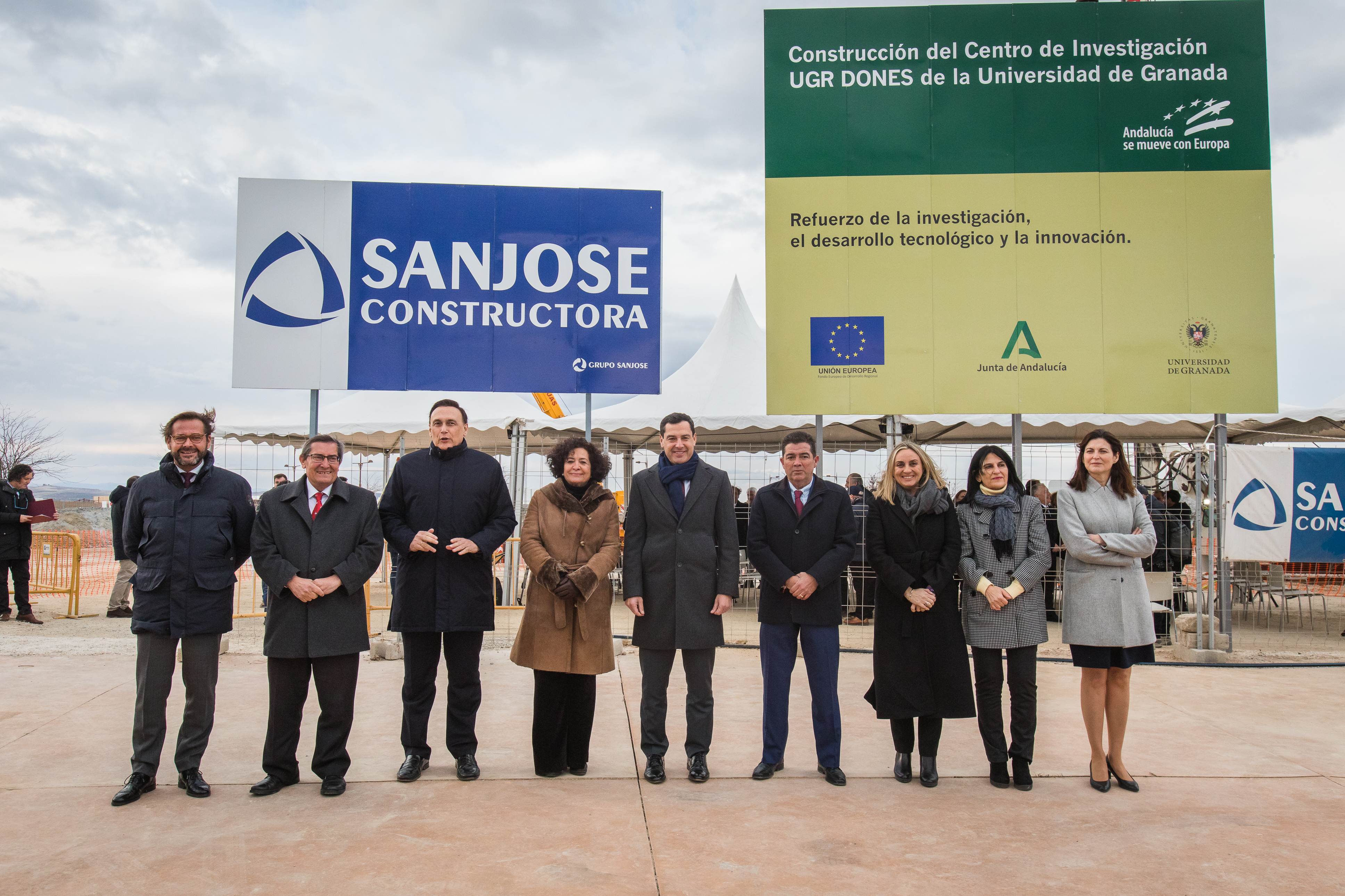 El presidente de la Junta de Andalucía, Juanma Moreno, y la rectora de la Universidad de Granada, Pilar Aranda, colocaron ayer la primera piedra del futuro centro de investigación UGR-DONES, edificio que servirá para apoyar y reforzar el proyecto matriz, la construcción del acelerador de partículas IFMIF-DONES.